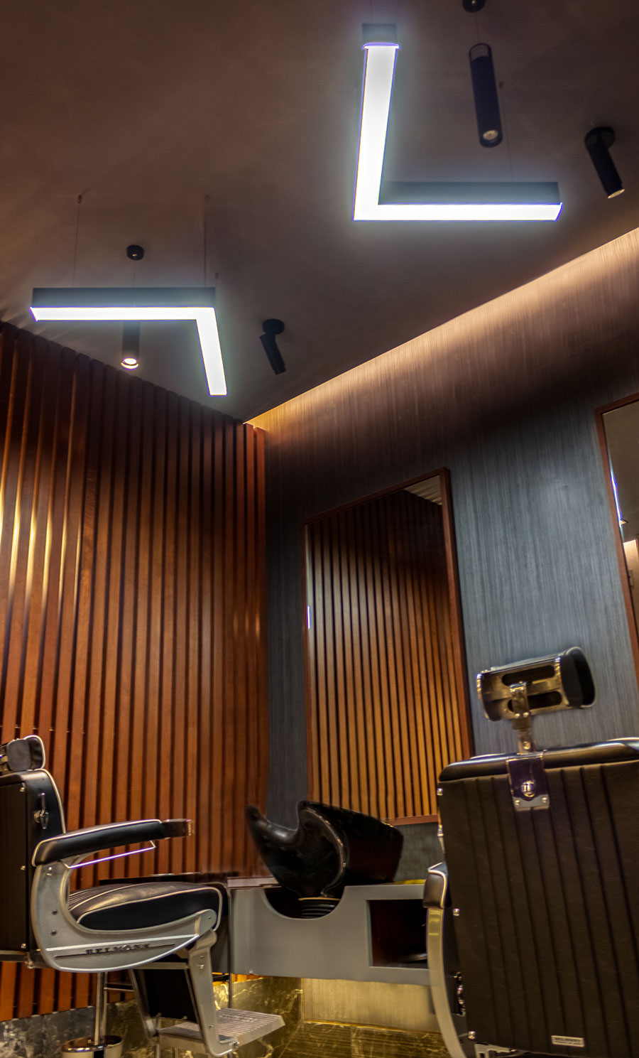 Este proyecto fue un gran reto, ya que se tuvo que trabajar en conjunto con el interiorismo (el cual es muy varonil y oscuro) y a su vez brindar la iluminación necesaria para que se realicen los trabajos de corte que son muy puntuales.