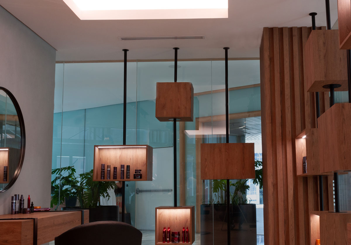 Para el diseño de iluminación se quisieron crear cúpulas con iluminación indirecta en cada una de las cabinas para seguir con la temática del concepto, sin embargo, también se complementó con spots que focalizan los lugares de trabajo.