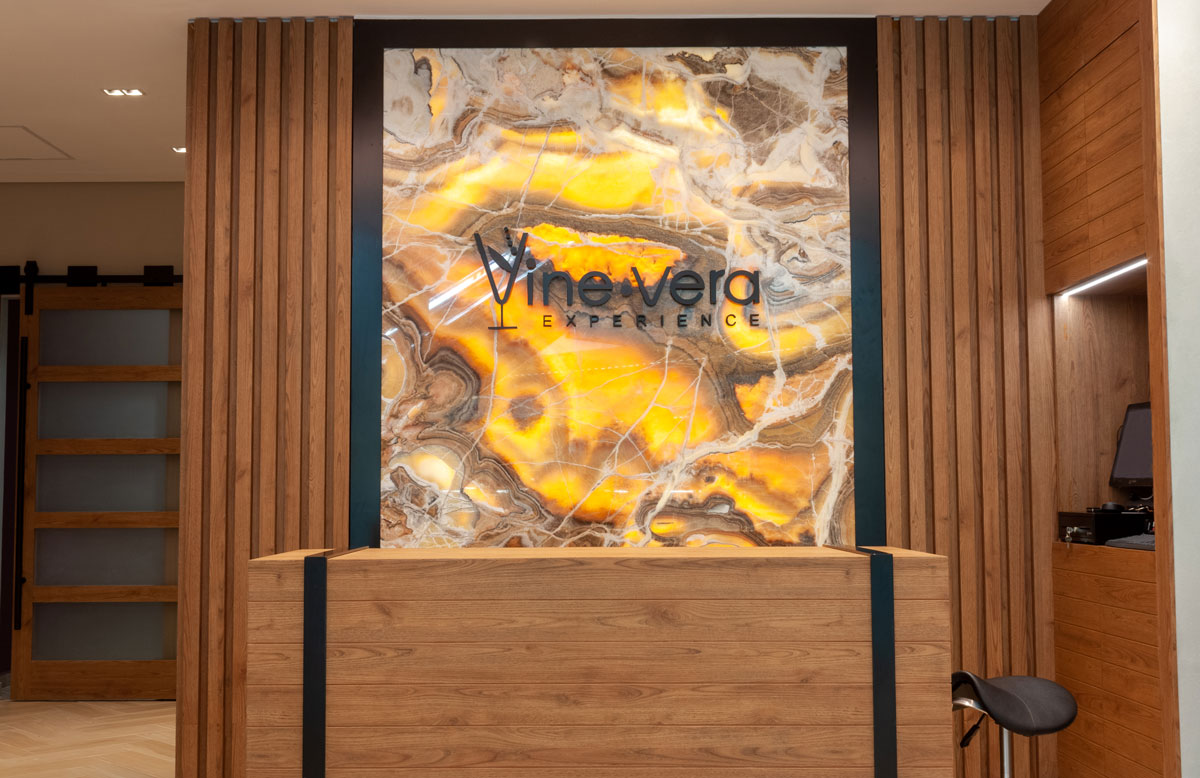 El concepto principal del espacio es un viñedo, dado que los productos de Vinevera están hecho principalmente por componentes del vino.